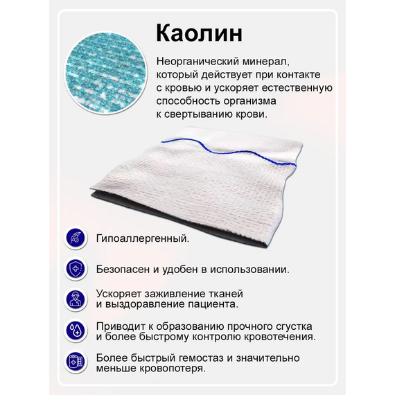 Каолиновый гемостатический бинт QuikMed — незаменимое средство для быстрого и эффективного контроля кровотечения. Идеально подходит для первой медицинской помощи и профессионального использования. Бинт пропитан каолином — натуральным минералом, который активирует механизм свертывания крови, обеспечивая мгновенное и надежное торможение кровотечения.