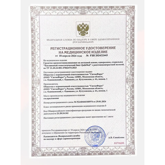 Продукт является медицинским расходным материалом и предназначен для остановки кровотечений различной интенсивности, будь то незначительные порезы или серьезные травмы. Легок в использовании и обеспечивает надежную фиксацию, что делает его идеальным решением как для домашних аптечек, так и для использования в медицинских учреждениях и полевых условиях.